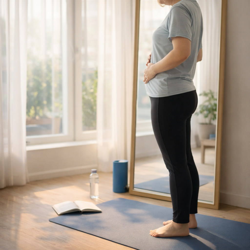 자세형 복부 돌출은 특히 앉아서 오래 일하는 사람에게 흔합니다. 핵심은 갈비뼈와 골반 정렬입니다. 아래 체크를 해보세요.