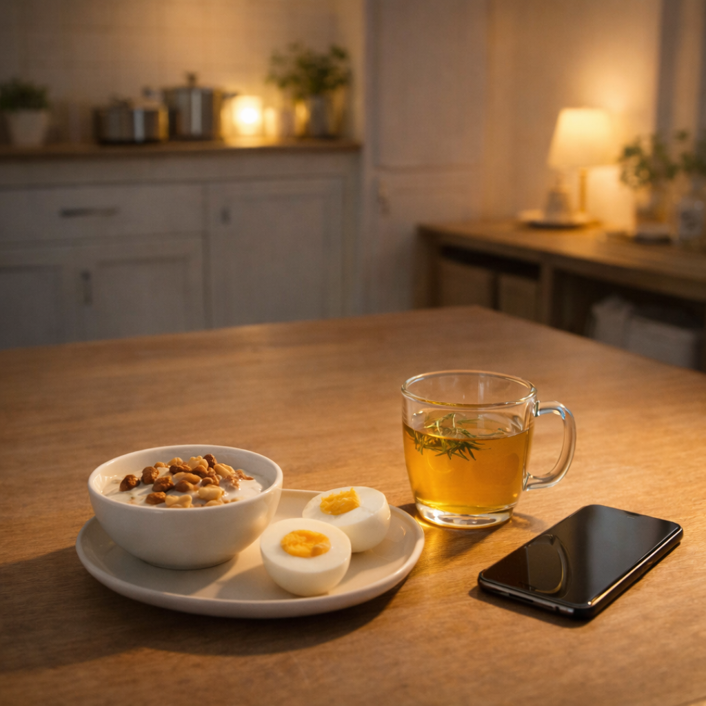 야식은 의지보다 동선의 영향을 크게 받습니다. 집에 과자/라면/빵이 있으면, 늦은 밤 피곤한 상태에서 가장 쉬운 선택은 그쪽입니다. 그래서 환경 설계는 단순하지만 강력합니다. - 가공 간식은 대용량 금지, ‘집에 들이지 않기’ - 야식 대체용 비상식(요거트, 달걀, 두부, 견과)을 눈에 보이는 위치에 두기 - 야식 타이밍에 자주 앉는 장소(소파/침대) 근처에 물/허브티를 먼저 배치하기 이런 배치는 “먹지 말자”가 아니라 “다른 선택이 더 쉽다”로 만들기 때문에 장기적으로 훨씬 잘 유지됩니다.